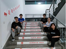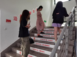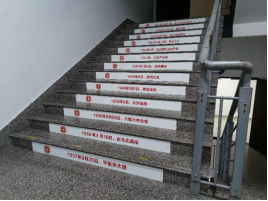 利用一号教学楼一至五楼的111级台阶,以时间为主线,在每层台阶上贴上对应年份的党的历史大事件。重点展示了中国共产党成立以来到建党100周年历史进程中的重要历史事件,浓缩了中国共产党人艰苦创业、继往开来的丰功伟绩,展示了中国共产党领导全国人民不懈奋斗、不断奋进的光辉历史,引导师生学习、了解中国共产党筚路蓝缕奠基立业的百年历程,坚定师生爱党爱国的信念。
