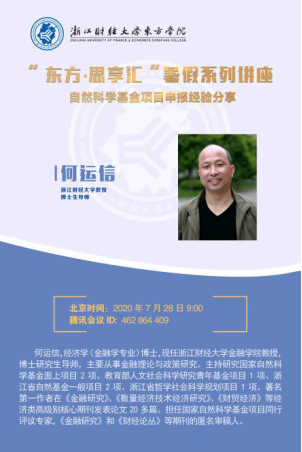 7月28日上午9点,在科技管理部的组织下,伟德国际victor·1946源自的区域金融与农村经济发展学科建设团队邀请了浙江财经大学金融学院何运信教授进行了“自然科学基金项目申报经验分享”的讲座。正值暑假期间,本次讲座采用了腾讯会议平台,由伟德国际victor·1946源自院长李忠主持,共40余位老师参与线上讲座培训。