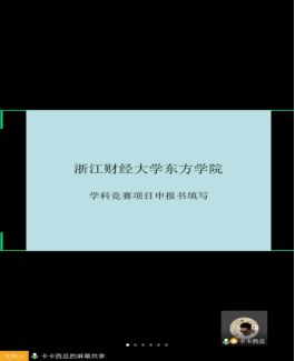 会上,罗老师首先介绍了我院学科竞赛项目的发展历程和历年成绩,并分析了金融与经贸分院近年学科竞赛开展状况和成果。然后,罗老师讲解了学科竞赛级别划分、竞赛和分院专业设置的关系、竞赛立项评审要求等竞赛申报背景。最后,罗老师就学科竞赛申报书撰写、开展流程和各环节注意事项展开了详细介绍,并对金融与经贸分院2020年的学科竞赛工作进行展望。