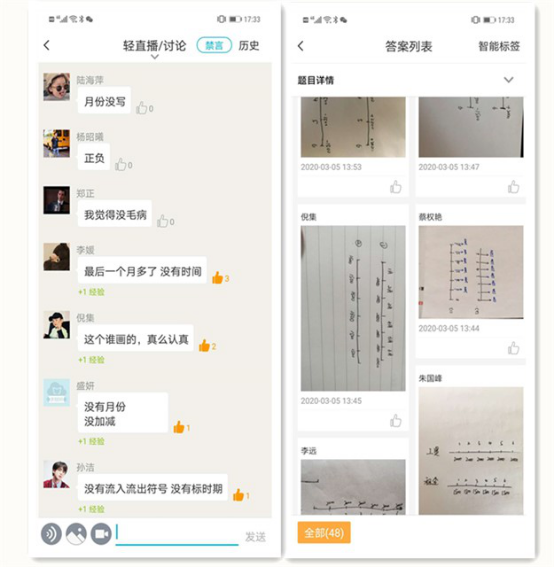 学生普遍反映这种教学模式他们很喜欢,既不失上课的互动,同时也能在课上和课后反复观看教学视频,加深对知识点的印象。在讨论区与学生讨论也是一件令人开心的事情,大家各抒己见,感觉课堂比以往的实体课堂要热闹很多。课后我通常会在云课堂上发布并批改学生的作业,也会针对学生的问题逐个给予评价。