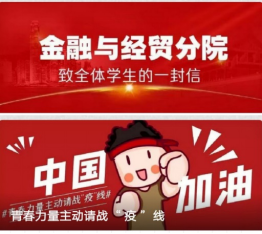 分院微信公众号定期推送,宣传科学防控知识,引导师生理性认识疫情,科学做好防护。通过党员倡议书、《致全体金融与经贸分院学生的一封信》《武汉加油|征集令》《青春力量主动请战“疫”线 志愿者采访》《“疫”起在家学》系列推送等线上宣传,坚定青年学生阻击疫情的信心,为打赢疫情防控阻击战汇聚更多正能量。