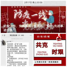 学生党支部通过“寻找抗疫微故事”“战疫必胜”“武汉加油”等活动,号召学生党员坚决服从大局、听从指挥、勇担使命,带头做好个人防疫,合理安排假期生活。