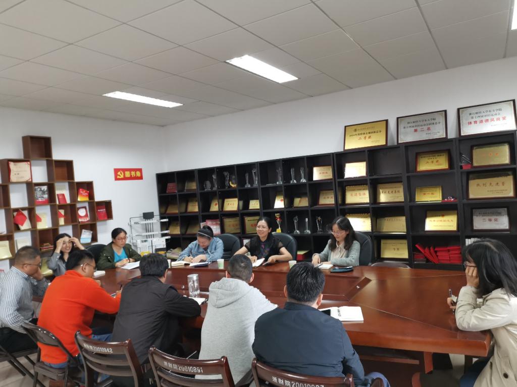 10月15日下午,王跃梅副院长、科技合作部副部长姚丽、钱苏蕾一行走访金融与经贸分院开展“不忘初心、牢记使命”主题教育基层调研,就学院科研政策、科研管理、横向项目开发、科研成果转化与社会服务、国际交流等问题进行了深入沟通。分院领导班子、学科带头人、骨干教师和科研秘书参与调研。