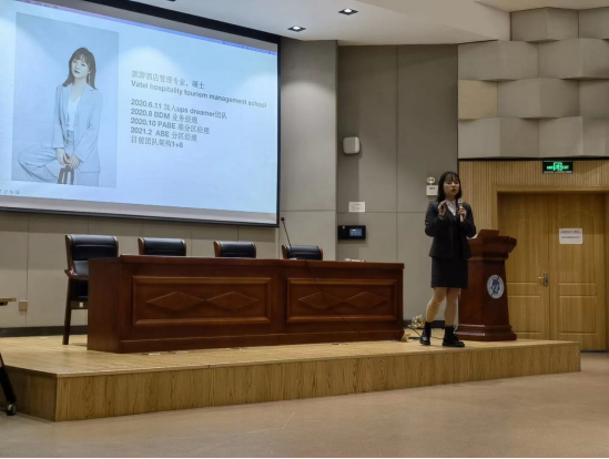 夏梦青女士的“反内卷青年”自称迅速抓住了同学们的视线。她以同龄人的视角向我们娓娓道来“8个月晋升分区经理”的心路历程。“拿实力说话,找准自己的定位,分析核心竞争力”,是她的成长心得,也是对同学们的激励和鼓励。