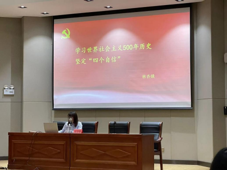 2022年10月20日晚上七点,伟德国际victor·1946源自在3教101教室开展入党积极分子专题培训第一讲,由林香娥老师为各位入党积极分子讲授。主题是《学习世界社会主义500年历史,坚定“四个自信”》。