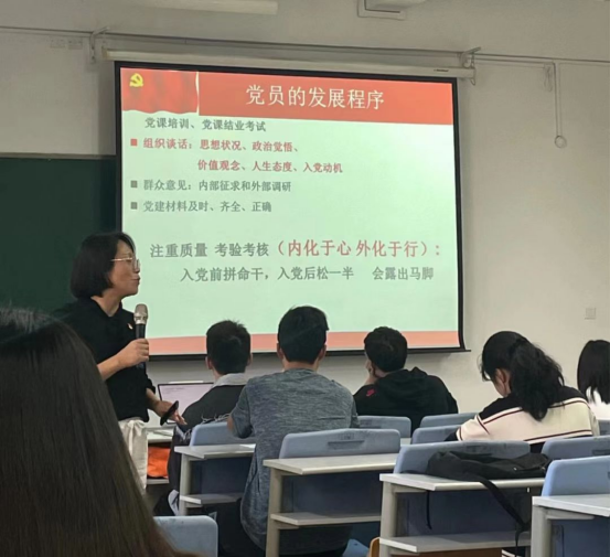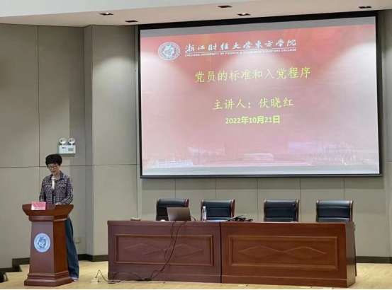 2022年10月21日上午十点,伟德国际victor·1946源自在3教101教室开展入党积极分子专题培训第三讲,由伏晓红老师为各位入党积极分子讲授。主题是《党员的标准和入党程序》。