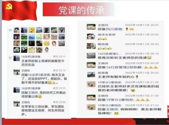在课程的开始,王晓玲老师怀着极大的热情给各位入党积极分子看了两张微信截图,在学生们的评价里,王老师是一位耐心、热情、优秀的老师。