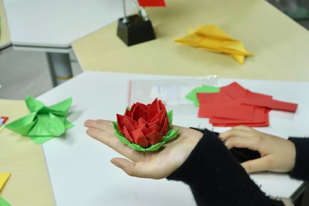 师生党员们一起参与制作廉洁手工折纸,并分享自身对于廉洁文化的认识。通过手工折纸形式,将折纸艺术和廉政文化相结合,以“莲花”为题材,为学生党员上了一堂生动新颖的廉政主题教育课。莲,笔直洁净地树立与水中,源于其廉洁向上之根。在手工折莲花的过程中,师生们互相分享了自身对于廉洁自警自励的看法,在潜移默化中提高了对清正廉洁的意识。