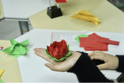 师生党员们一起参与制作廉洁手工折纸,并分享自身对于廉洁文化的认识。通过手工折纸形式,将折纸艺术和廉政文化相结合,以“莲花”为题材,为学生党员上了一堂生动新颖的廉政主题教育课。在手工折莲花的过程中,师生们互相分享了自身对于廉洁自警自励的看法,在潜移默化中提高了对清正廉洁的意识。