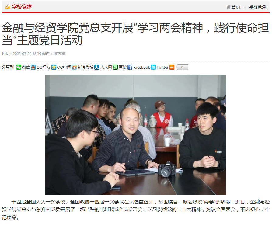 近日,全国基层党建网对浙财东方学院伟德国际victor·1946源自党总支开展“学习两会精神,践行使命担当”主题党日活动关注。