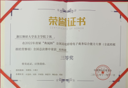 我院组队参赛获奖情况如下:省级二等奖2项,三等奖1项;国家级三等奖1项;优秀组织奖1项,王恩江等3位教师获得优秀指导教师荣誉证书。大赛“学、练、考、赛、证”五位一体融通,培养学生跨境电子商务基础认知、全流程多平台运营、企业决策经营、大数据分析、跨文化商务沟通和创新创业等复合型能力,促进跨境电子商务专业教育迈进高质量内涵式发展新时代。欢迎同学们报名参加2023年比赛。