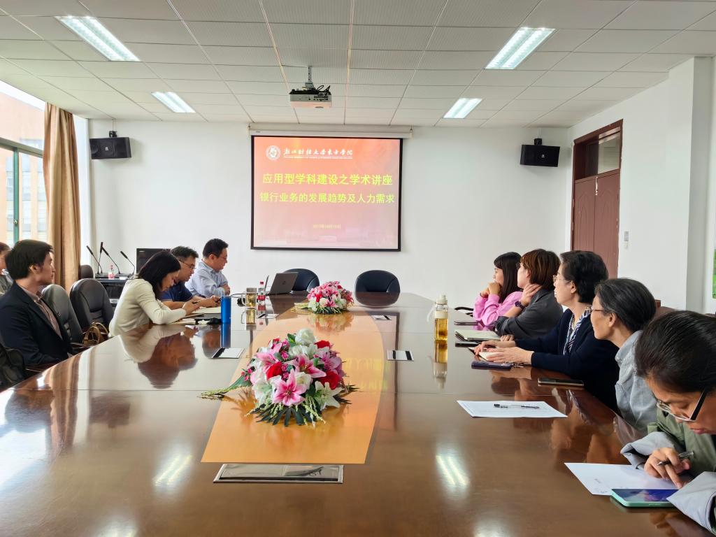 为推动学院应用型学科建设和发展,2023年10月10日下午13:30,伟德国际victor·1946源自邀请了中国民生银行杭州城北支行副行长龙璇在1J-506举行了题为“银行业务的发展趋势及人力需求”的公开讲座。