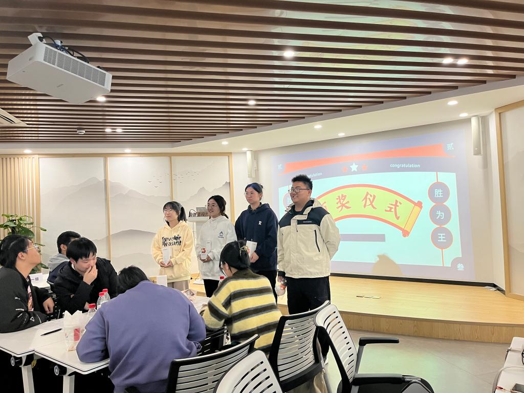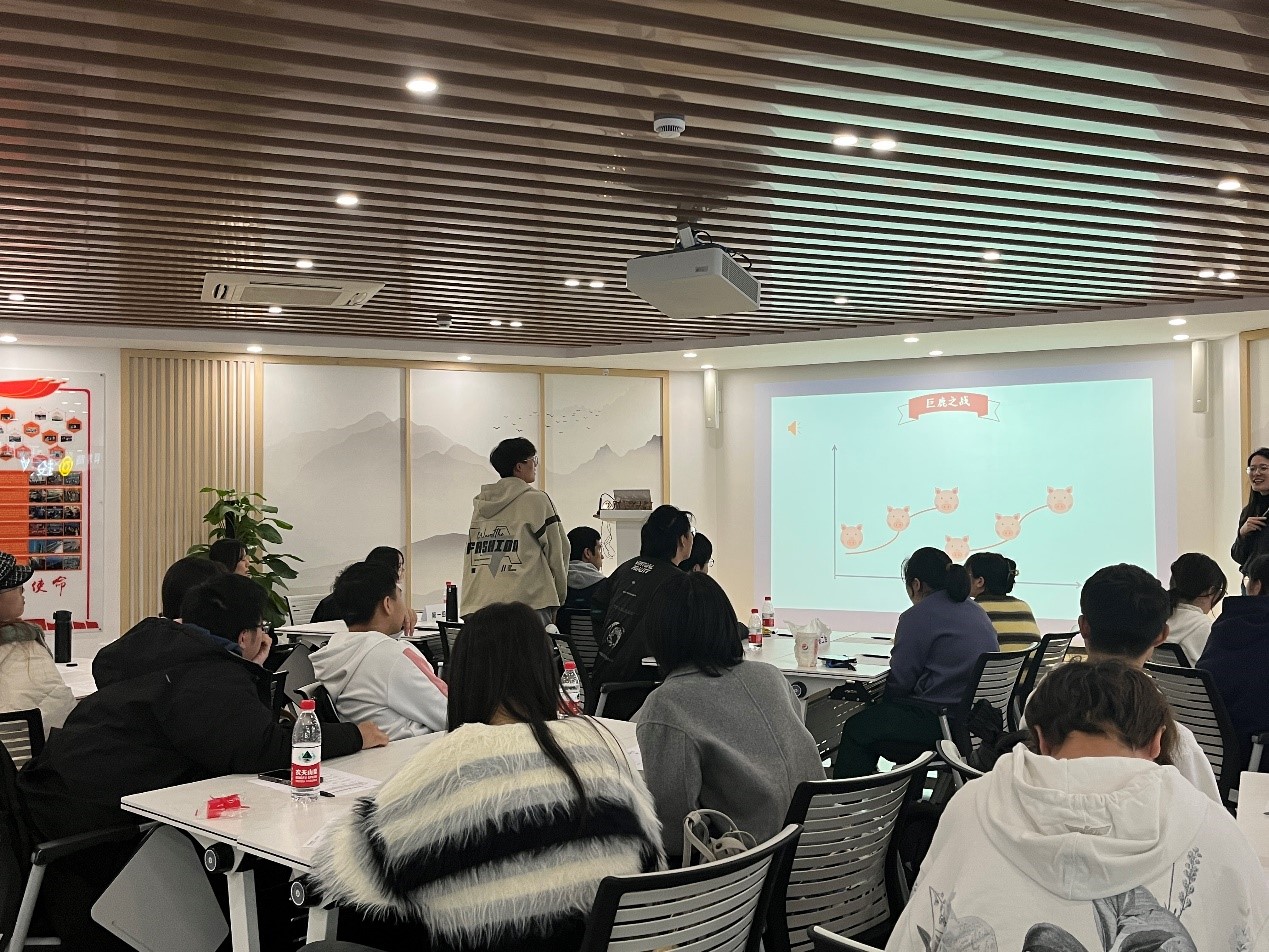最后,在高顿教育姚老师的主持下,学生们学习了简历书写的结构格式与内容要点,并参与了模拟简历大赛。获胜小组荣获由财通证券和高顿教育联合赞助的小礼物。通过《金融大作战》游戏,学生们以寓学于乐的方式深入了解金融有趣知识,涵盖了猪周期、口红效应、金融杀猪盘等概念。