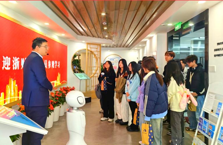 在财通证券企业王老师的带领下,学生们参观了基地内的证券历史区、资本市场区、基金特色区、产品展示区、专家讲堂区以及模拟交易区等功能区域。这一全面的参观体验引发了学生们对证券市场的浓厚兴趣。