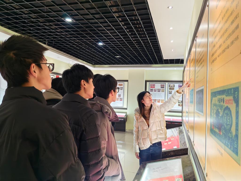在陈列馆中,解说员带领国贸专业的学生们穿越时光,聚焦中国红色金融史的各个重要时刻。货币陈列馆内的展柜成为学生们学习的窗口,通过观察各个时期的货币,他们深刻感受到中国金融的历史脉络与沧桑变迁。