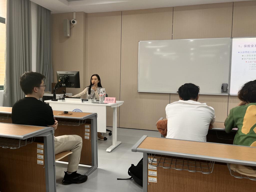 2024年4月16日下午1:30,为增强我院学生保险学专业知识能力,进一步扩展思维,提高自我理论水平,学生保险学会邀请浙江财经大学金融学院硕士生导师,保险专业硕士点负责人,美国天普大学访学学者周海珍副教授莅临指导,并开展《保险市场分析及养老金融融合发展》讲座。
