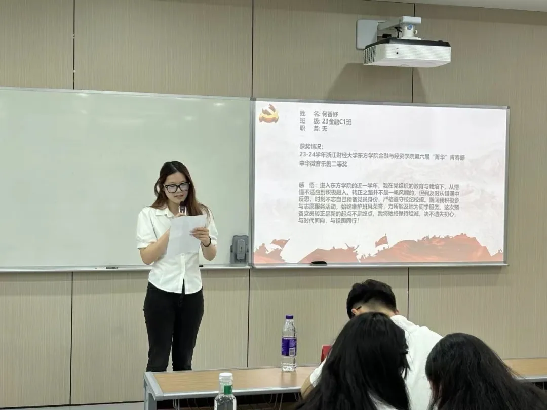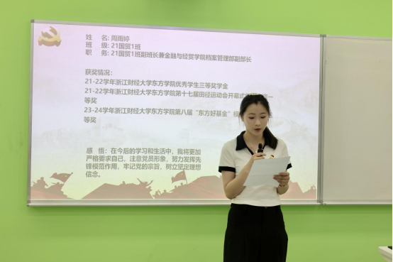 章文可等31名预备党员依次上台宣读《转正申请书》,从思想、学习、工作及生活等方面向党组织汇报了具体情况,也对自身的缺点和不足提出了进一步改正的计划与决心。