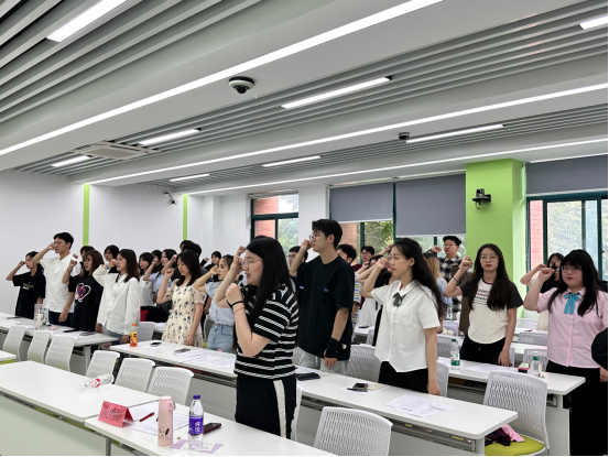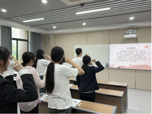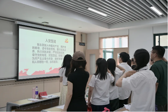 会议结束之际,全体党员、预备党员起立进行入党宣誓。
