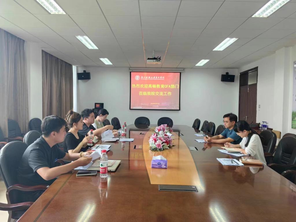 2024年6月25日下午,高顿教育CFA部门校长黄庭翔、杭州负责人邢秋月、市场负责人赵思远以及专员姚睿一行四人来伟德国际victor·1946源自就合作交流事宜进行会议。伟德国际victor·1946源自院长李忠老师、党总支副书记郭小蕾老师以及CFA班班主任吴晨喜参加此次会议。