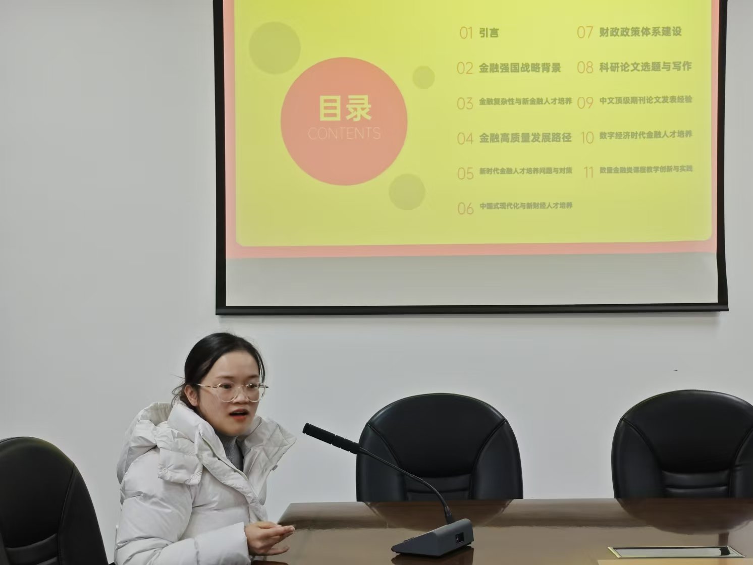 刘冬双老师的分享引起了与会教师的热烈反响。此次读书会不仅为青年教师提供了一个交流和学习的平台,也进一步推动了我院金融学类专业的教学和科研工作的深入发展。学院将继续支持和鼓励教师参加各类研修会和学术交流活动,不断提升教师的专业素养和教学能力,为培养更多优秀的金融人才贡献力量。