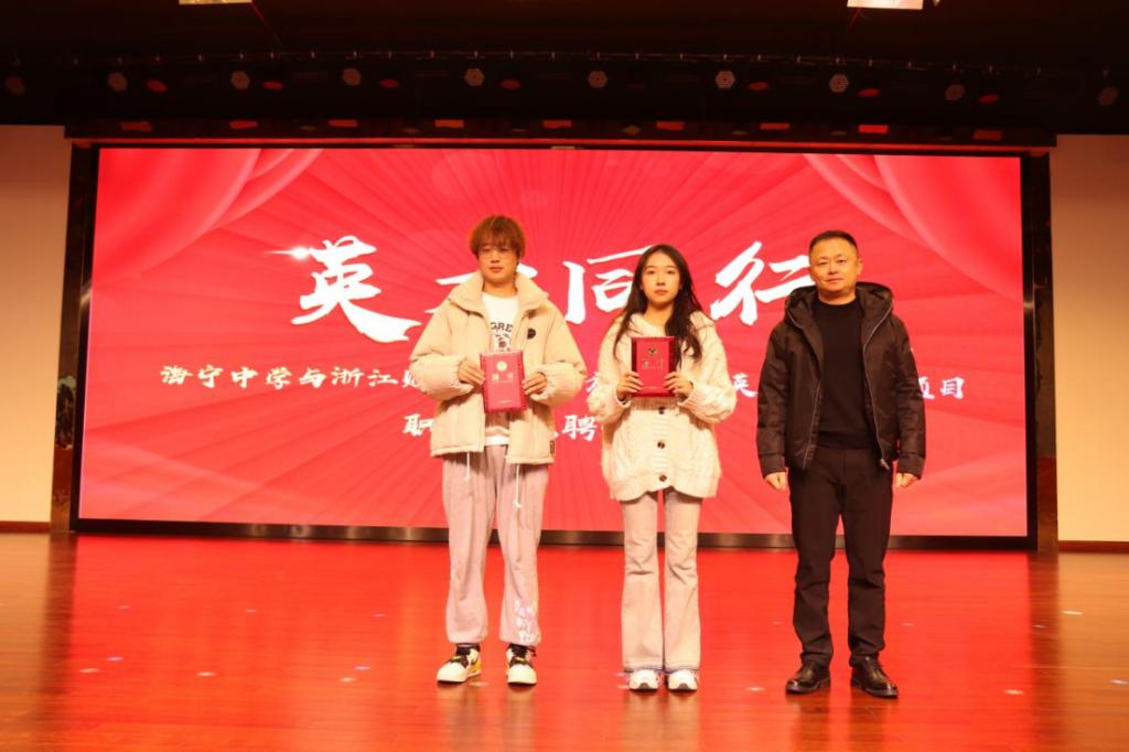 决赛中,参赛学生激情洋溢,答辩思路清晰,展现了卓越的职业规划能力和对未来发展的深刻思考。赛事特别举行海宁中学与伟德BV1946“英才同行”项目职规大赛教练聘任仪式。海宁中学副校长金辉庄重地为大学生代表颁发聘任证书,台下掌声雷动。