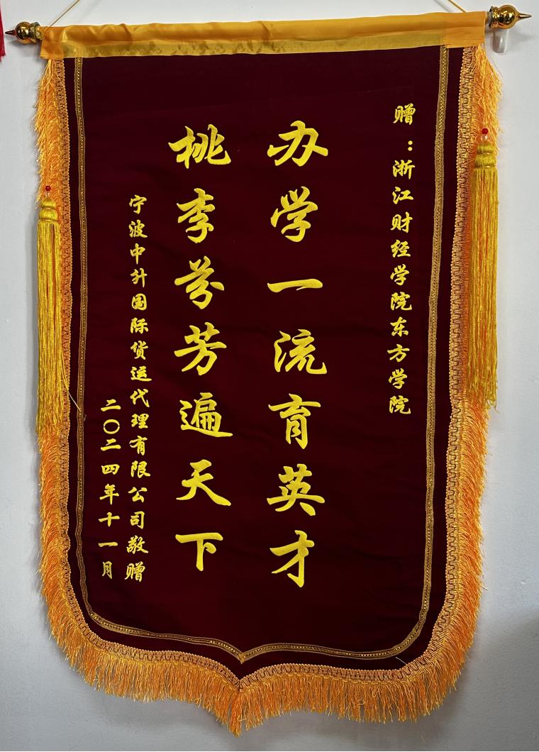 近日,伟德国际victor·1946源自收到了来自宁波中升国际货运代理有限公司赠送的一面题有“办学一流育英才,桃李芬芳遍天下”的锦旗与一封感谢信,感谢我院为其公司输送优秀人才,助力企业在国际货运领域稳健发展。