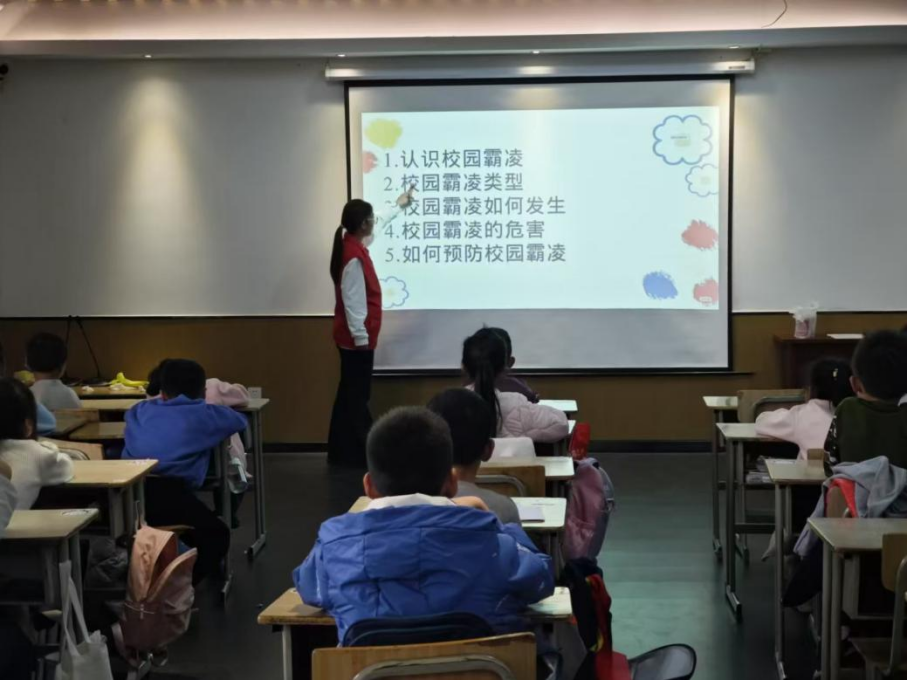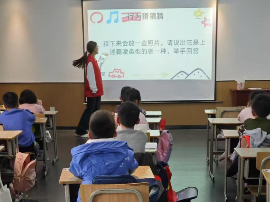 志愿者们还通过“行为猜猜猜”环节,让孩子们了解肢体霸凌、语言霸凌、社交霸凌和网络霸凌等不同类型,为他们建立起一道防范霸凌的安全屏障。这些知识让孩子们能够在遭遇霸凌时,勇敢地说“不”,共同维护一个和谐美好的校园环境。