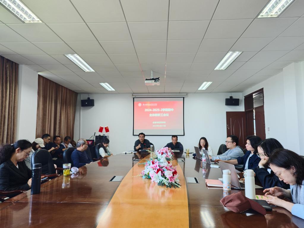 2025年4月15日,我院于1J-506会议室召开2024-2025学年第二学期期中全体教职工会议。本次会议由李乐副院长主持,学院领导班子成员及全体教职工共同参与,围绕毕业生答辩、就业工作推进、主题教育开展及教师科研进展等核心议题展开深入讨论。