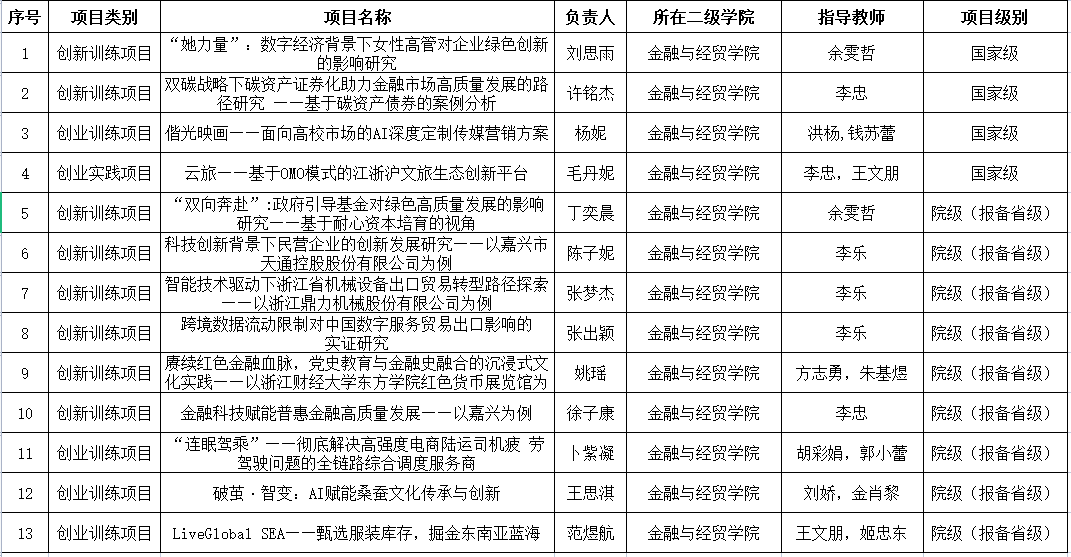 近日,经创业学院组织评审,我院喜获2025年大学生创新创业训练计划拟立项项目13项,其中国家级4项,院级报备省级9项。
