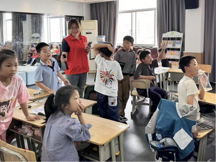 志愿者们化身环保小老师,通过互动问答和分类游戏,引导孩子们学习垃圾分类。孩子们认真聆听,积极互动,在欢声笑语中学会了如何正确分类,也明白了资源循环利用的意义。这堂课不仅传授了知识,更启迪了孩子们心中的环保意识。他们纷纷表示,要当好“环保小卫士”,用实际行动守护我们的美丽家园,让蓝天更蓝,碧水更清!