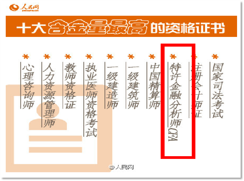 《人民日报》多次将CFA推荐为含金量最高的资格证书之一。