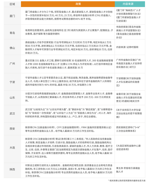 全国各地政府出台相关政策,争夺高层次金融菁英人才。