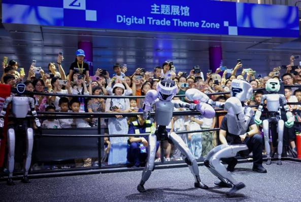 本届数贸会以“在数贸会看见创新未来”为年度主题,吸引了154个国家和地区的1800余家企业参展,其中国际展商占比超21%,国际客商达1.1万人,规模与国际影响力较往届大幅提升。展会设置“未来科技竞技场”主展馆及人工智能、丝路电商、数字医疗等7个特色展区,集中呈现生成式AI、具身智能、太空计算等尖端技术与应用场景,为师生搭建了链接全球贸易前沿的直观窗口。