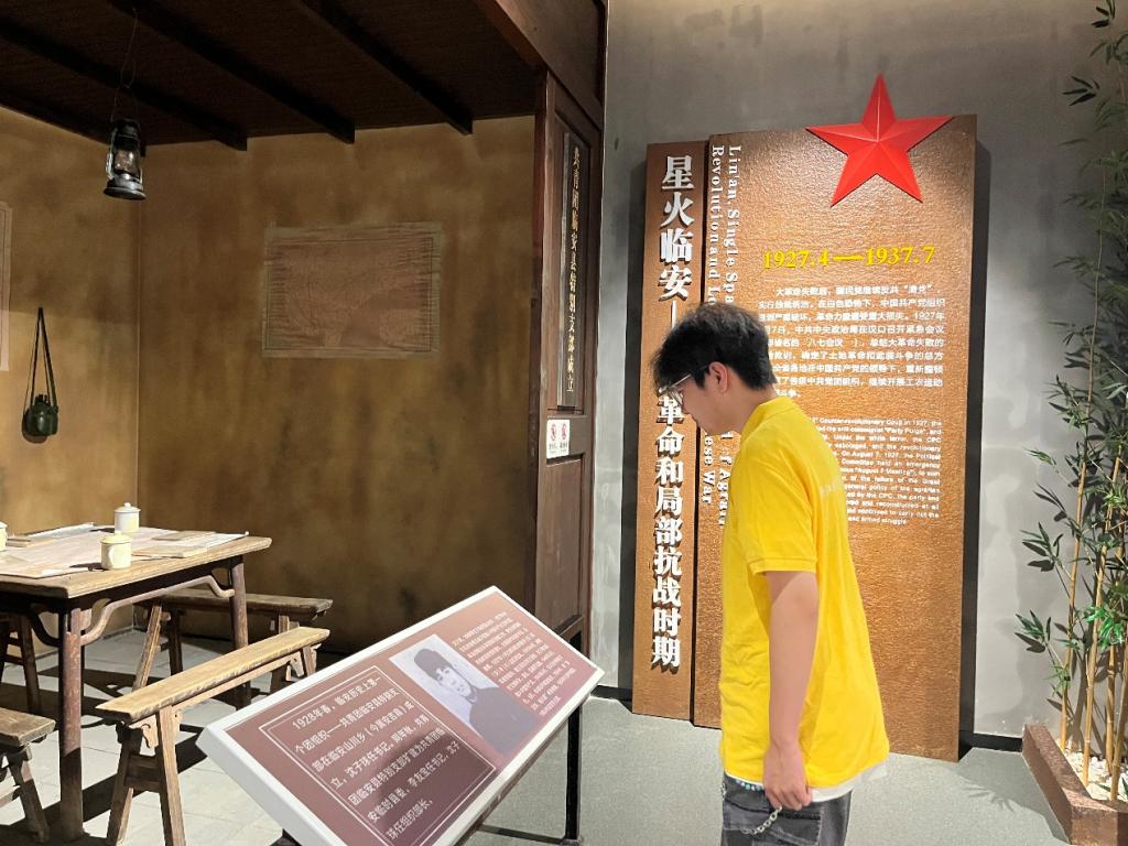 土地革命时期展区,成员们驻足凝视着当年革命者使用过的简陋武器、破旧的衣物以及手写的革命传单。抗日战争时期展区,一幅幅记录着战火纷飞岁月的照片震撼着众人的心灵。解放战争时期展区则展现了临安迎来解放的光辉历程。改革开放时期展区,实践团成员们看到了临安烈士精神在新时代的传承与延续。