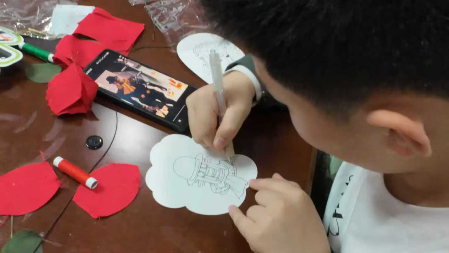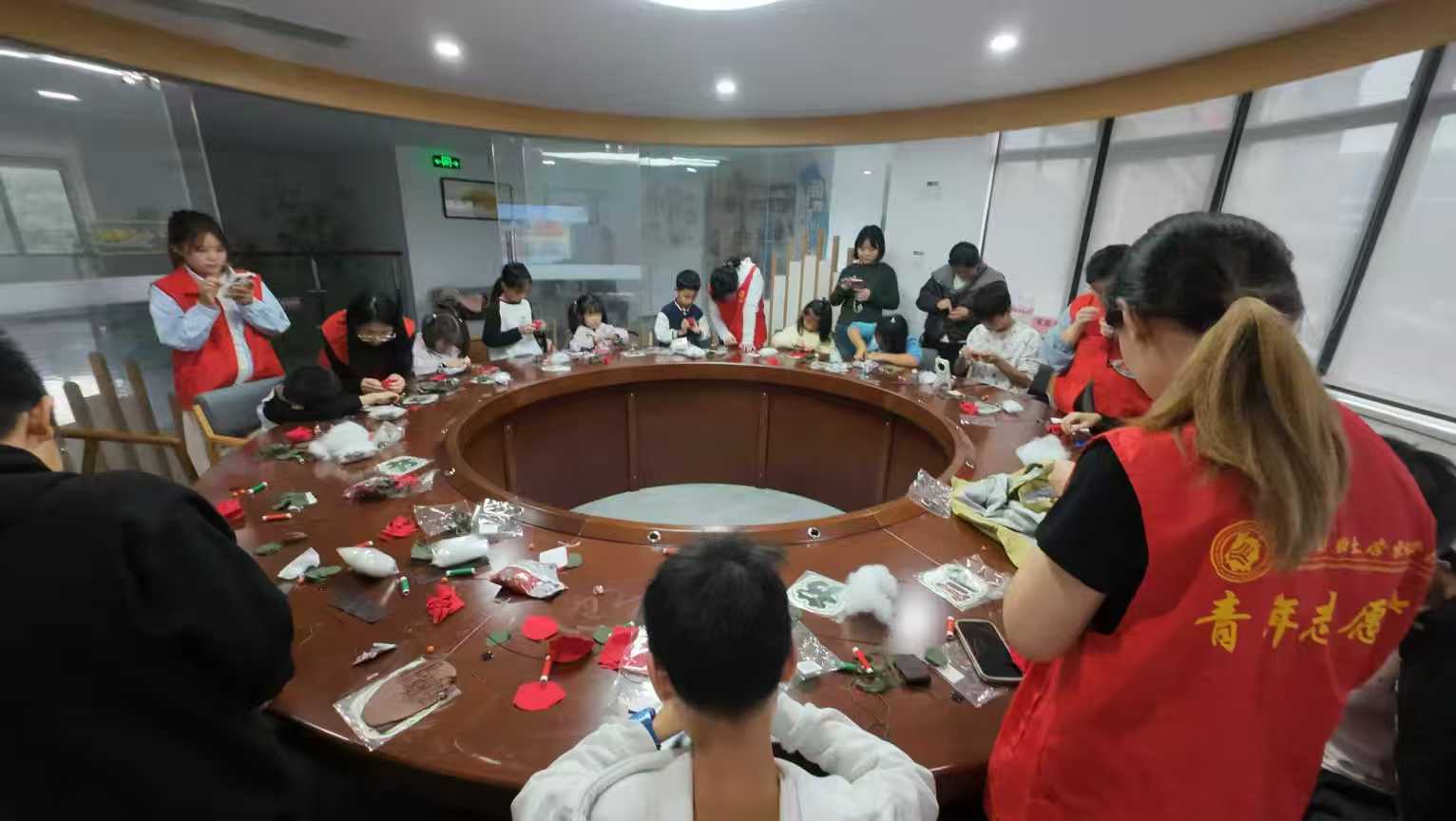 文化解析过后,香囊制作环节正式开启。志愿者提前备好绸缎、艾草、棉线、绣针等材料,并现场示范香囊的裁剪、缝制、填料等步骤,耐心讲解针法技巧。小朋友们跃跃欲试,拿起材料跟着操作,随着一个个造型精巧、散发着艾草清香的香囊相继完成,小朋友们捧着自己的作品,脸上满是成就感。