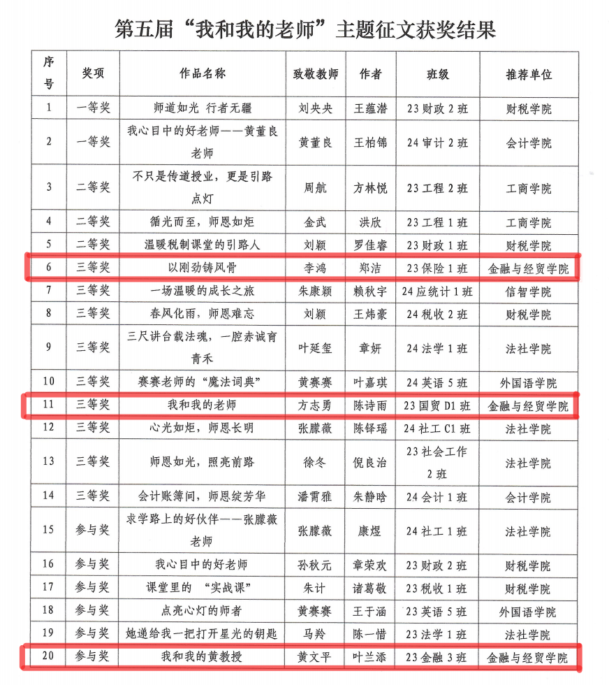 时序轮转,又至杏坛芬芳时。在这充满希望与感恩的时节,迎来了第41个教师节——为致敬辛勤耕耘的教育工作者,礼赞无私奉献的教育家精神,展现东方学院教师的育人风采与师生间的温暖情谊,我院师生积极参加第五届 “我和我的老师” 主题征文活动。其中,我院郑洁、陈诗雨、叶兰添三位同学凭借真挚细腻的情感表达与扎实的文字功底脱颖而出、斩获荣誉,充分彰显了新时代青年学子感恩奋进的精神风貌。