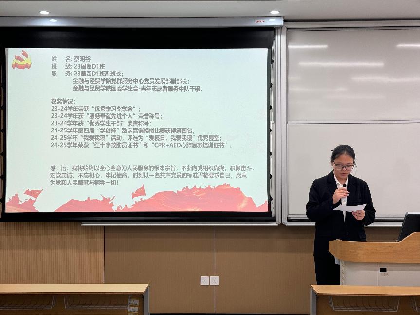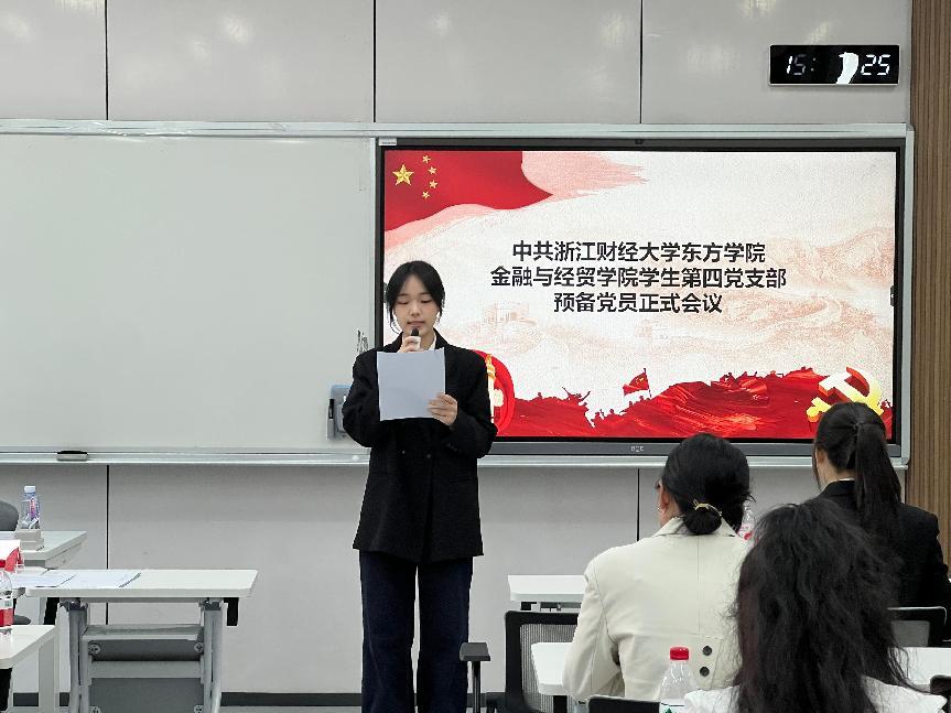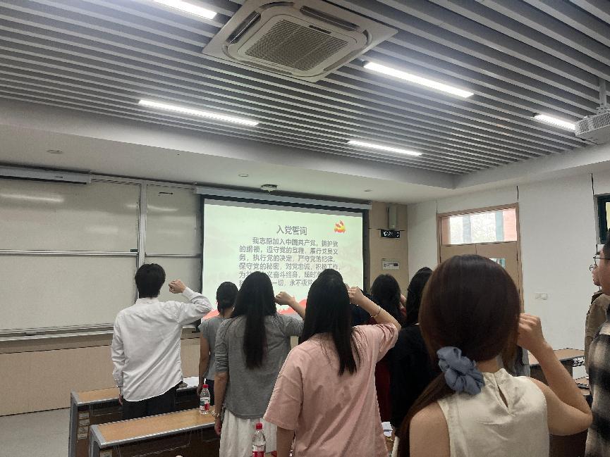 各同志依次上台宣读《入党志愿书》,汇报了自成为入党积极分子以来,在思想、学习、工作和生活等方面的成长与蜕变,展望了未来努力方向,并表达了持续向党组织靠拢、以优秀党员标准严格要求自己的坚定决心。
