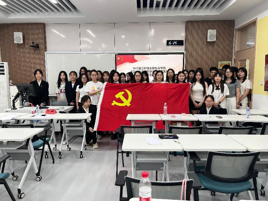 会议结束之际,全体党员、预备党员起立进行入党宣誓。
