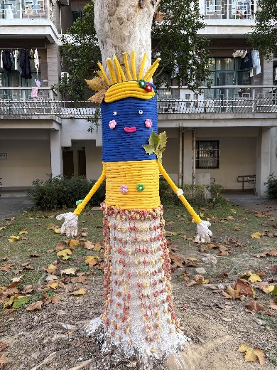 活动伊始,参与人员于 9 寝门口集合点整齐列队,指导老师简单分组,划定各小组负责区域与树木数量,分发线绳、保温棉、剪刀、胶水等材料,同步提供多张树木防寒创意照片供参照,鼓励同学们自主发挥创造,让“防寒衣”既实用又有创意。