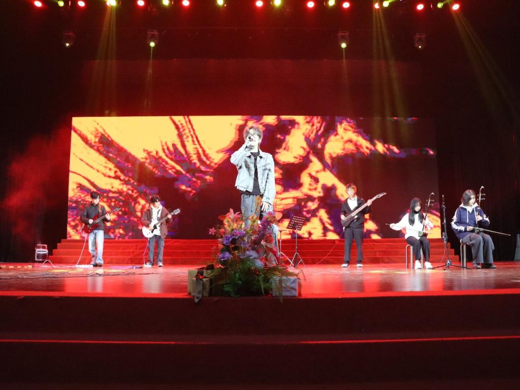 晚会在乐队演绎的《天下》中拉开帷幕,激昂的旋律与热血的演奏瞬间点燃现场氛围,鼓点与吉他的交织让观众沉浸在豪迈的音乐意境里。