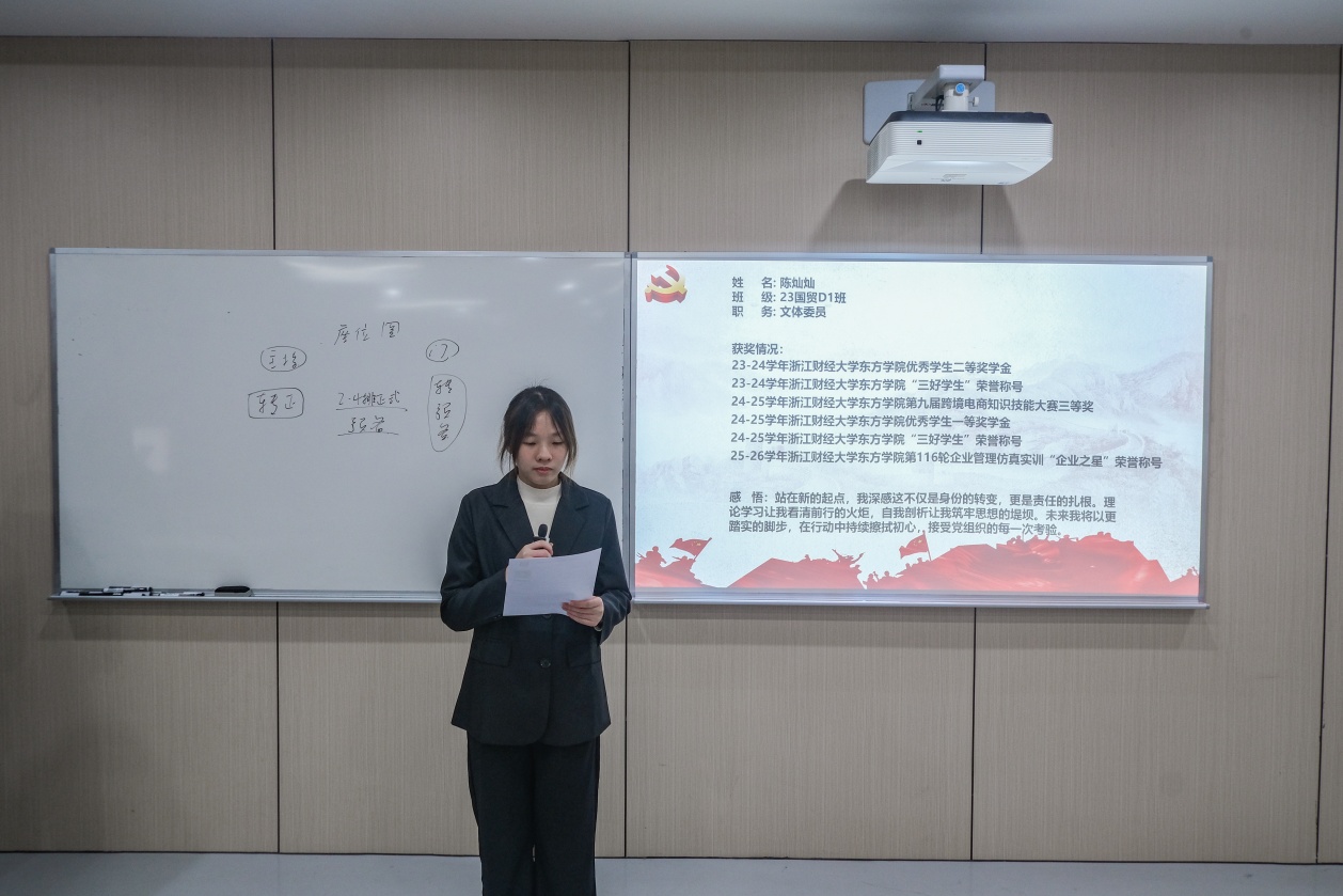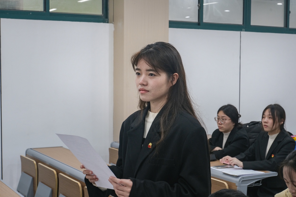 高欣暄等32名发展对象依次上台宣读《入党志愿书》,从思想政治、学习成绩、工作贡献、群众基础、作风纪律等方面,详细汇报了自成为入党积极分子以来的成长历程、收获感悟及存在不足,深刻表达了对加入中国共产党的坚定渴望和为党和人民事业奉献青春的决心。