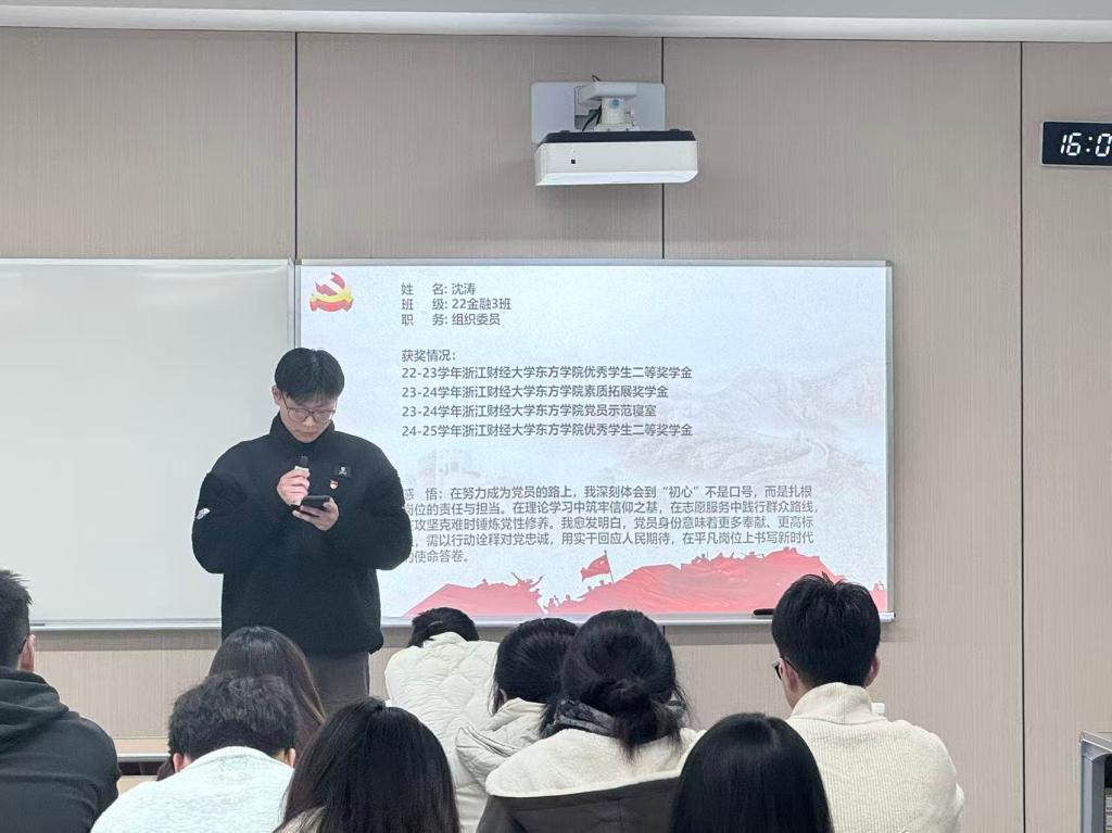 周嘉晨等32名预备党员依次上台宣读《转正申请书》,从思想、学习、工作及生活等方面向党组织汇报了具体情况,也对自身的缺点和不足提出了进一步改正的计划与决心。