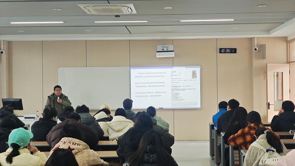 为切实解决大学生求职过程中的困惑与难题,帮助学子明晰职业发展方向、提升就业竞争力,12月23日,我院在3教304举办 “青春不迷茫,解锁求职通关密码”主题求职指导讲座。本次活动特邀行业资深 HR、宁波云文人力资源管理有限公司总经理史松涛担任主讲人,活动吸引众多即将踏入职场的毕业生参与。