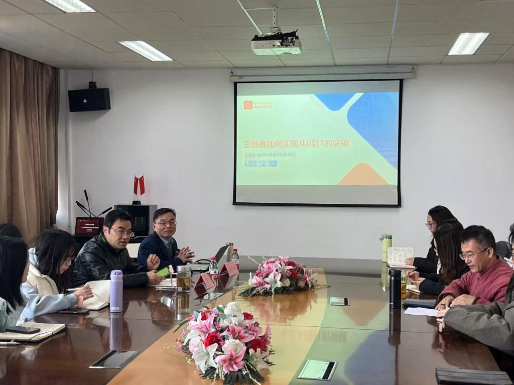为了进一步推动学院应用型学科的发展,加强教师队伍对经济金融类课题申报的认识与理解,2025年11月18日上午10:00,伟德国际victor·1946源自特别邀请到了阿里巴巴商学院院长助理、硕士生导师金贵朝教授,举办了主题为“三创赛如何实现从0到1的突破”的学术讲座,本次分享会由我院院长李忠主持,我院30余位师生积极参与。