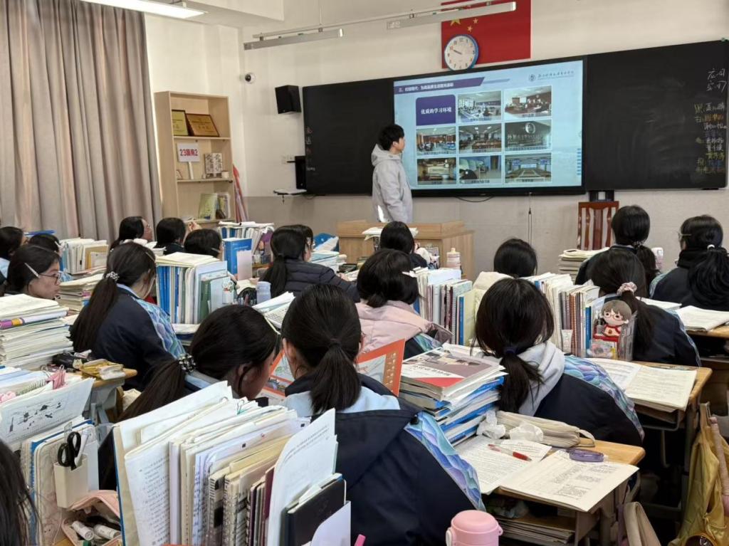 1月23日,伟德国际victor·1946源自赴“宁波市鄞州职业教育中心学校”实践服务团,开展“东方我代言,感恩母校行”主题宣讲活动。此次实践活动采用“座谈交流+班级宣讲+现场答疑”的多元形式,切实为学弟学妹提供定制化指导。