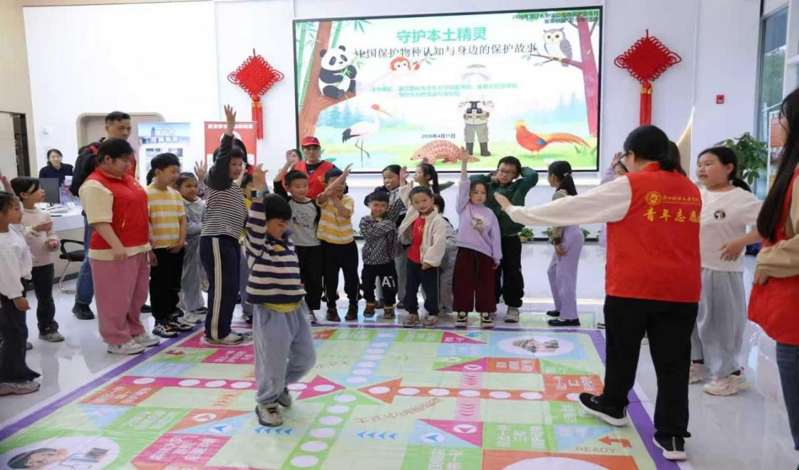 动物保护小卫士主题真人飞行棋、动物找家等一系列趣味活动使现场氛围持续高涨。在 “我是小小保护员” 情景模拟中,面对 “发现受伤的保护鸟类”“有人捕捉猫头鹰” 等场景,小学生们活学活用、各抒己见、现场演示应对方法,在思考与实践中掌握正确的野生动物保护技巧。