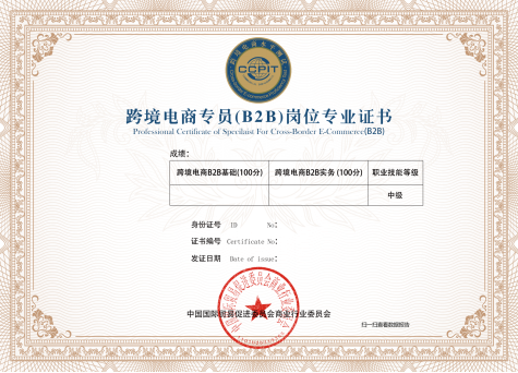 跨境电商专员(B2B、B2C)岗位专业证书测试相关情况如下: