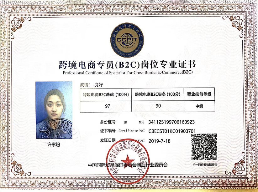 跨境电商专员(B2B、B2C)岗位专业证书测试相关情况如下:
