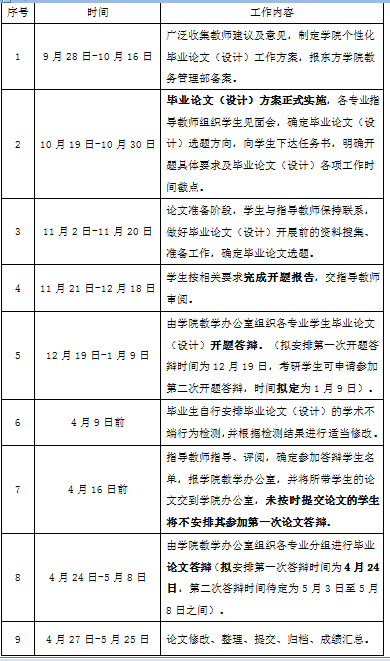 6.本科毕业论文(设计)学生在校期间具有两次答辩机会,首次答辩不及格者可以申请二次答辩。具体答辩工作见毕业论文工作安排表。