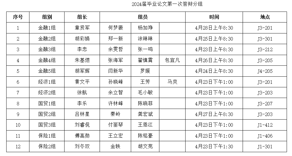 4.答辩具体分组见附件,学生须在开始时间提前20分钟到达答辩教室,做好相应准备工作,包括签到、填写答辩记录本的封面等。